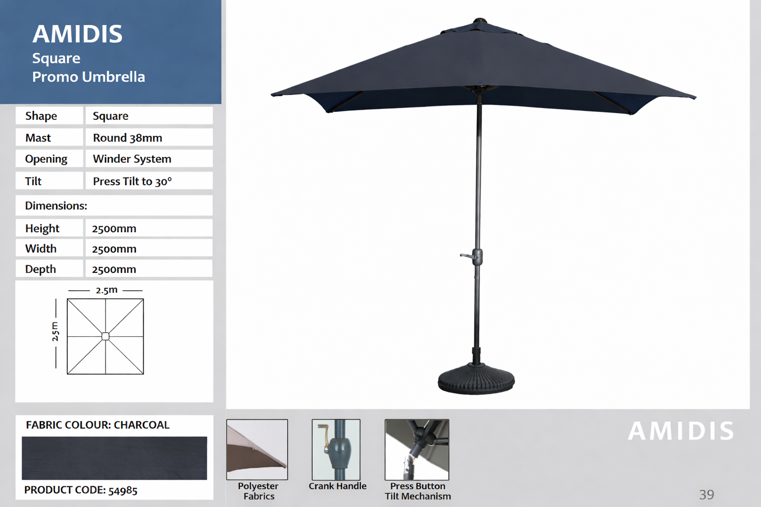 Introducing the Amidis umbrella that is available in 2.5m SQ